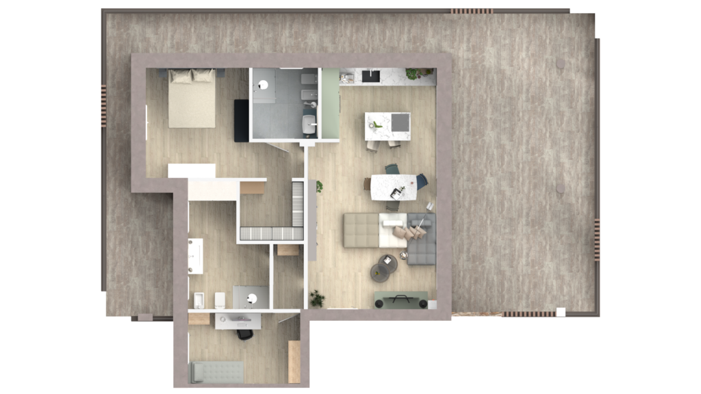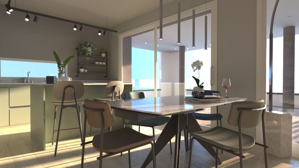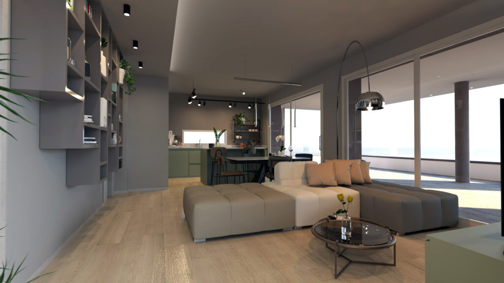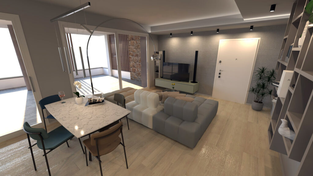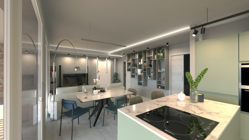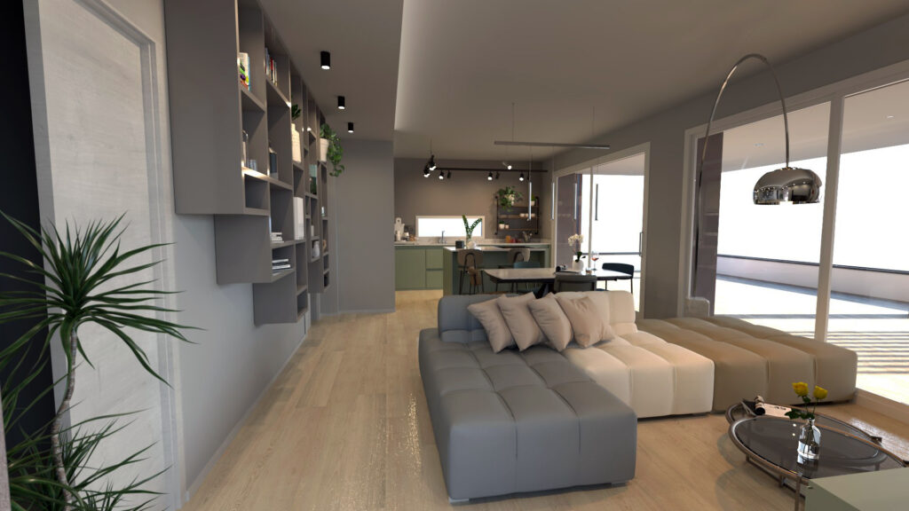 Questo progetto di interior design propone una soluzione moderna ed elegante per un open space che integra cucina, sala da pranzo e soggiorno, seguendo le indicazioni fornite dal cliente e andando ad inserire gli oggetti di arredo che poi realmente faranno parte dell’arredamento. La disposizione, la scelta dei materiali e lo studio dell’illuminazione contribuiscono a creare un ambiente armonioso, funzionale e accogliente. Il progetto combina estetica e funzionalità, creando un ambiente raffinato e accogliente. L’uso di tonalità neutre, materiali di pregio e un’illuminazione ben studiata contribuisce a un risultato moderno e armonioso, perfetto per un living contemporaneo.
