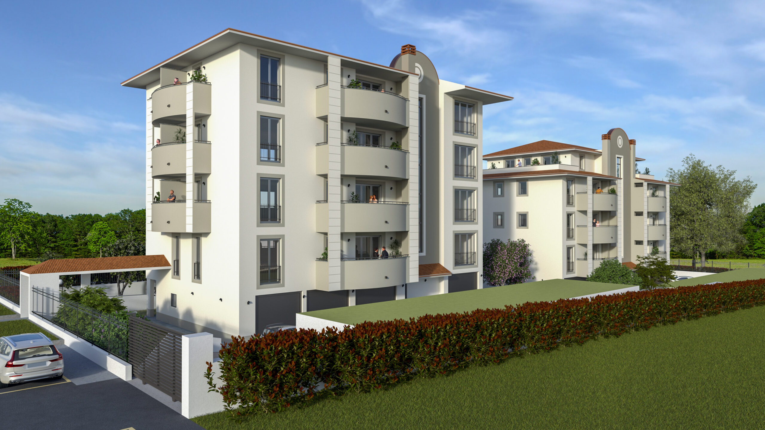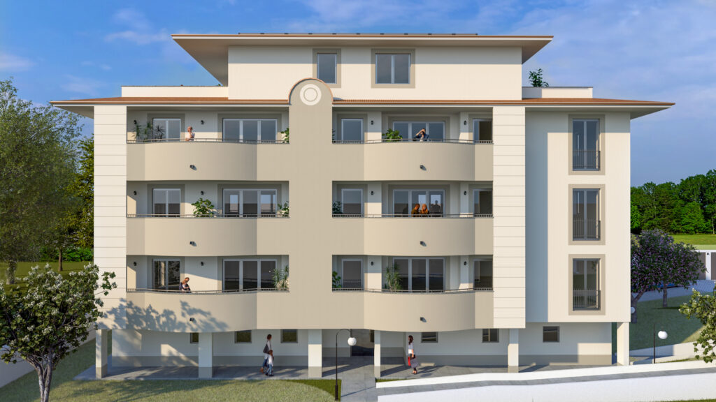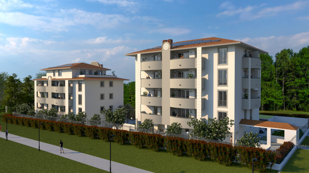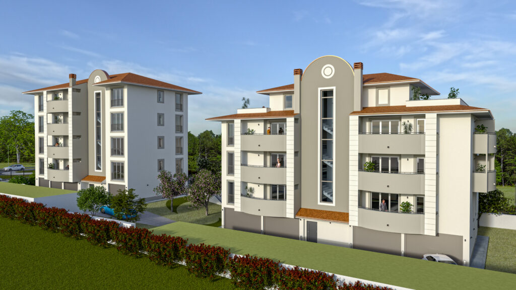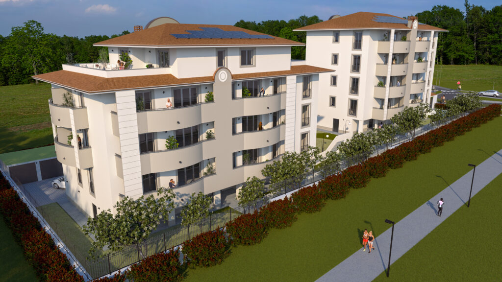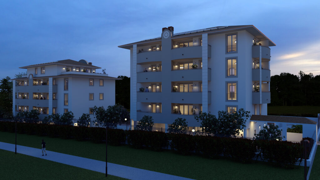 Questo raffinato complesso residenziale si distingue per un equilibrio tra eleganza architettonica e un’attenta progettazione degli spazi. La disposizione delle due palazzine è studiata per garantire privacy e vivibilità, integrandosi armoniosamente con il paesaggio circostante. L’attenzione ai dettagli, l’uso di materiali di qualità e la progettazione degli spazi esterni contribuiscono a valorizzare l’esperienza abitativa degli utenti.